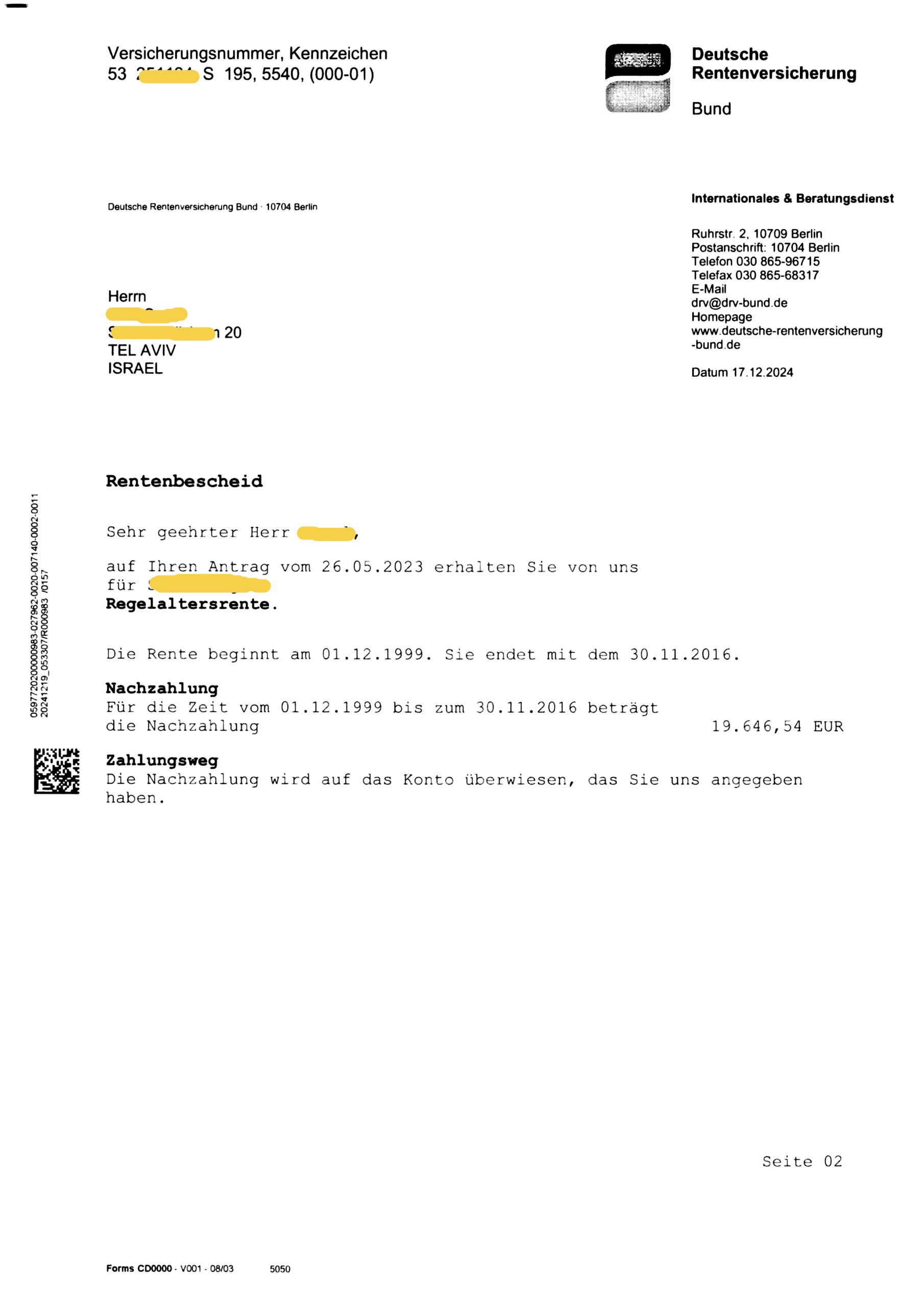 עזרתי למר ר.ס לקבל את המענק הביטוח הלאומי הגרמני בסך 19,646 יורו.